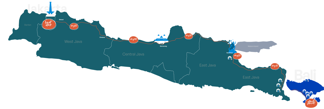 On March 28, 2026, Sungai Watch’s co-founders Gary, Kelly, and Sam Bencheghib are running 1,200 kilometers over 57 days across Indonesia to expand our cleanup efforts with Sungai Watch.